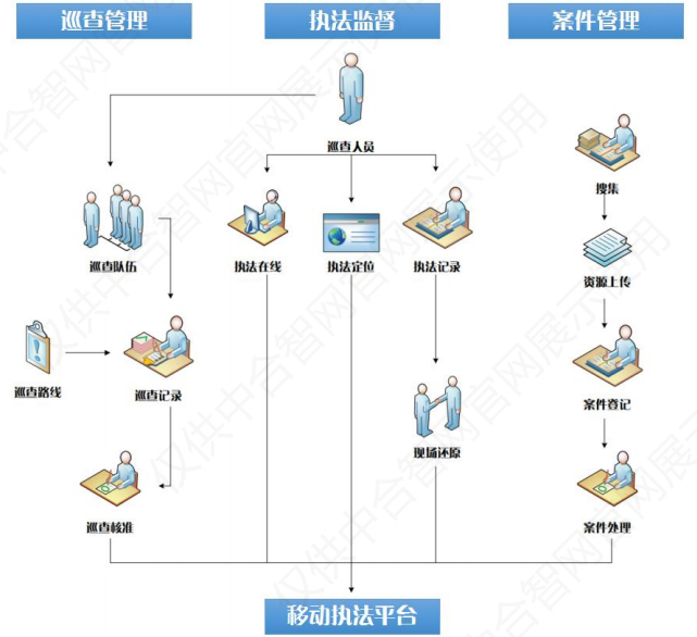 我公司以国家城市管理执法标准为基础,结合当前行政执法实际流程和最新要求,利用先进的信息化技术手段,设计并研发了综合执法网上办案系统与移动执法平台。系统可实现全流程的网上办案,为一线执法人员和执法人员指挥人员提供了信息查询、罚单打印、现场取证、信息采集、通知下发、案件派遣、移动指挥调度、执法人员定位及城管业务资源定位、现场案件审批、信息统计、人员考核以及突发事件应急响应等各种功能。使执法文明化、规范化、透明化。